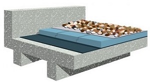 Membranlar döşeme üzerine gevşek olarak döşenmiştir. Rulolar üst üste bindirilir ve birleştirilir. Çatı parapetleri baskı çıtası ile tutturulur. Süzgecler uygun aksesuarlarla yalıtımı sağlanır.XPS, EPS ve bir jeotekstil tabakası membranın üzerine yerleştirilir üzeri yuvarlak, pürüzsüz çakıl (16 ile 32 mm kalınlık) veya koruma betonu ( en az 50 mm kalınlık) malzemelerden bir balast olarak (minimum ağırlık: 50 kg / m²) kullanılır.